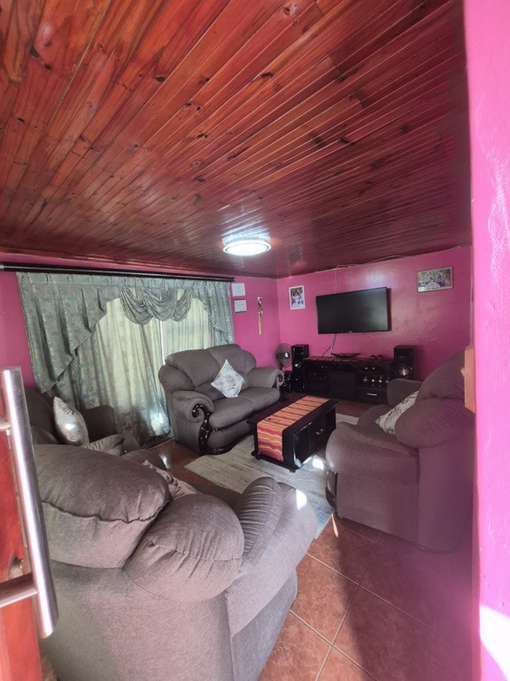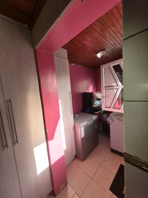 Each of the three bedrooms offers ample built-in wooden wardrobe storage, ensuring organized living. The two bathrooms are functional, catering to the needs of a family. While some interior walls feature bold pink hues, these can be easily customized to suit personal taste.
