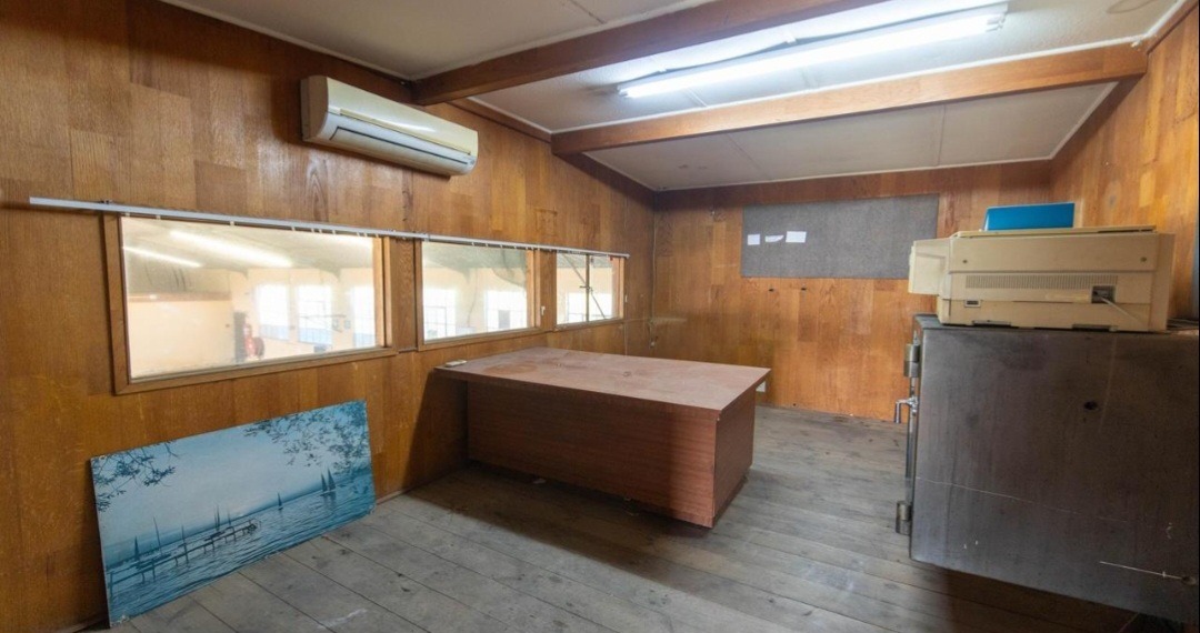 * An upstairs office space with a safe and aircon