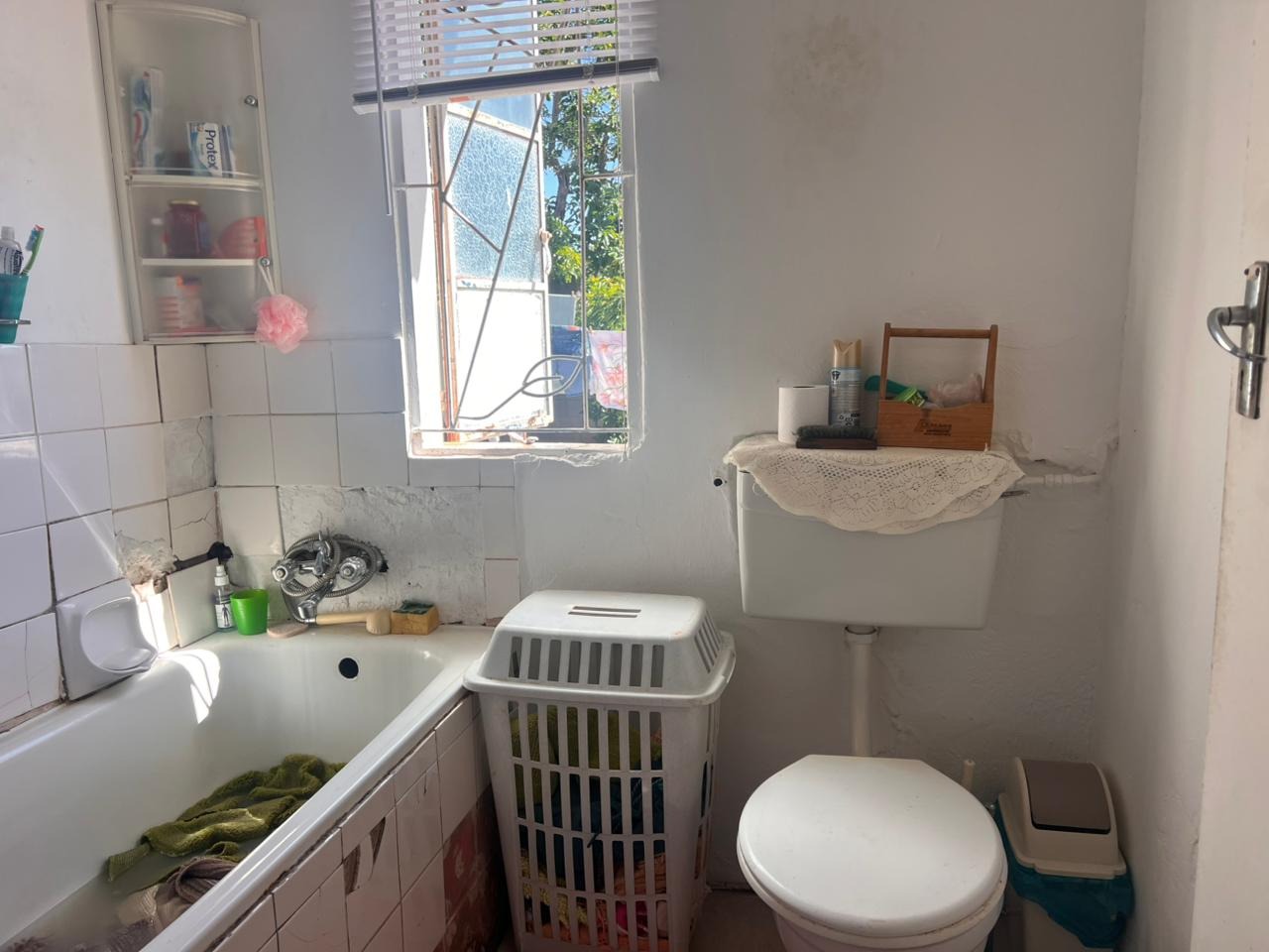 - Bathroom with bath, washbasin and toilet